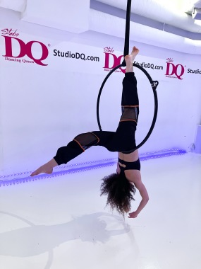 In her Aerial Hoop Basic and Intermediate classes, she focuses on teaching the fundamentals, strength, and technique, while supporting her students to achieve things beyond what they think they’re capable of. Everyone should try hoop — come and give it a go!