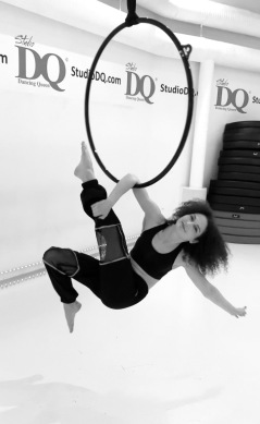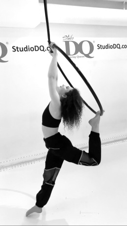 Hon började med hatha yoga vid runt 3 års ålder och har sedan dess hållit på med olika sorters dans. På sina kurser Aerial Hoop Basic och Intermediate fokuserar hon på att lära ut grunderna, styrkan och tekniken och stödjer eleverna i att klara saker utöver det de tror de kan. Alla borde testa hoop, kom och prova du också!